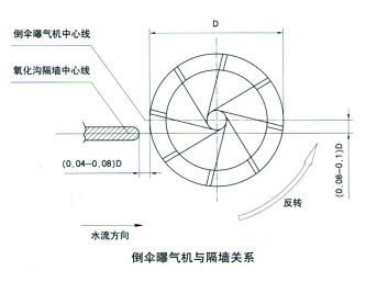 倒傘型表面曝氣機為垂直軸低速曝氣機,可廣泛用于城市污水 和各種工業(yè)廢水的生化處理。該機徑推流能力強、充氧量高、 混合樹拌能力強,特別適宜于表曝型氧化溝污水處理工藝。