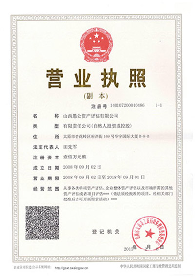 資產(chǎn)評(píng)估營(yíng)業(yè)執(zhí)照