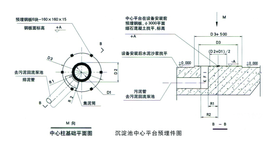 2、 需要溢流板,擋水板、排渣斗、套筒閥等配件時(shí),請(qǐng)予注明。若遠(yuǎn)程控制時(shí),套筒閥需用電驅(qū)動(dòng),請(qǐng)予注明,渣斗及堰板安裝參見周邊傳動(dòng)刮吸泥機(jī);