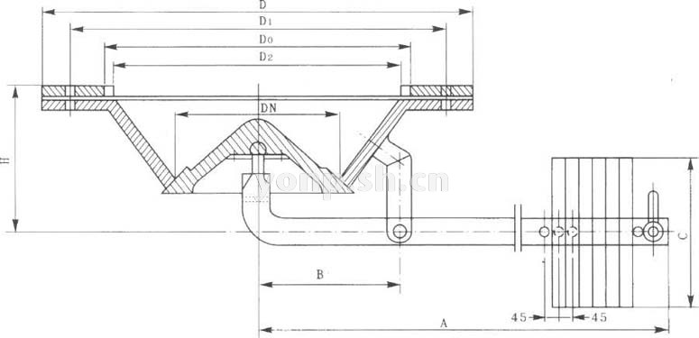 該閥適用于冶金、化工、建材等行業(yè),作為排灰塵和廢渣之類物料用。 該閥一般通過彎環(huán)向上拉動杠桿到開啟放料目的,去掉拉力,靠重錘呼關(guān)閉閥門。