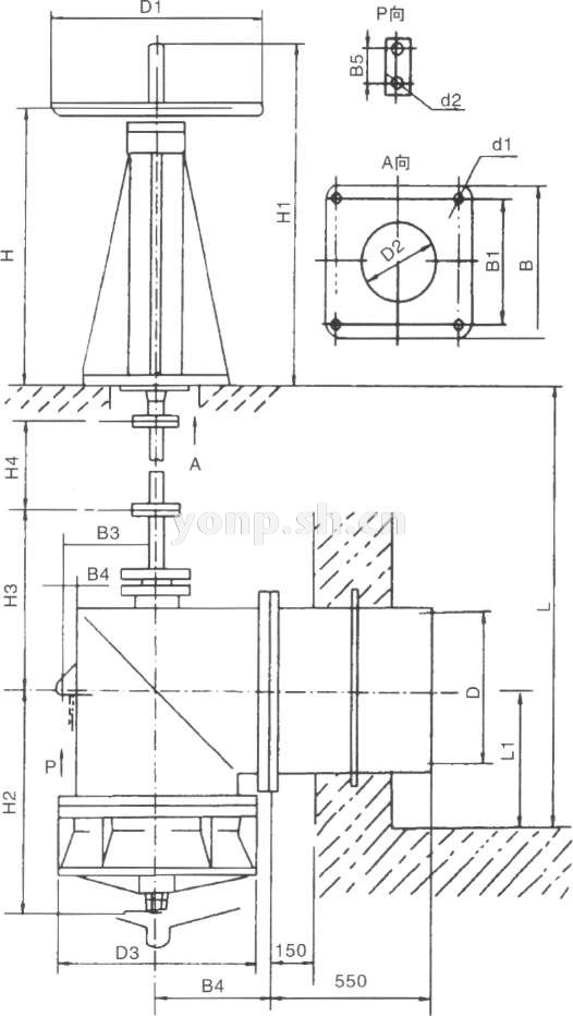 注:D2為操縱臺底面凸起部分尺寸,基礎(chǔ)予留孔應(yīng)大于此數(shù)。
