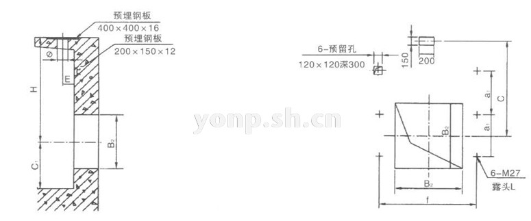 預(yù)埋件和預(yù)留孔基礎(chǔ)尺寸表