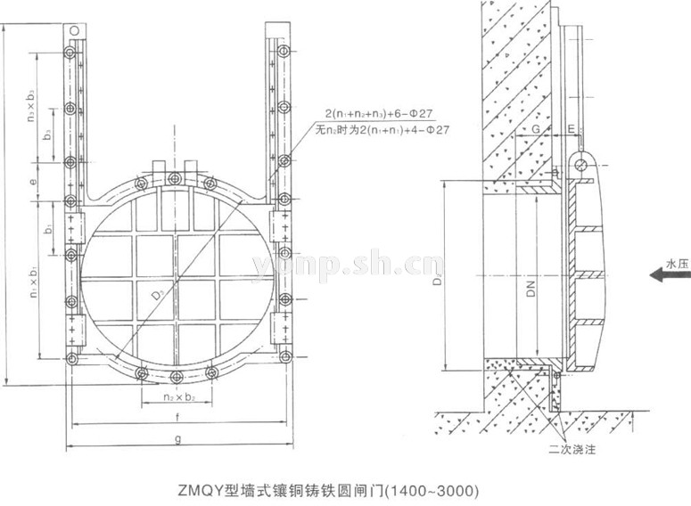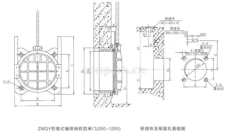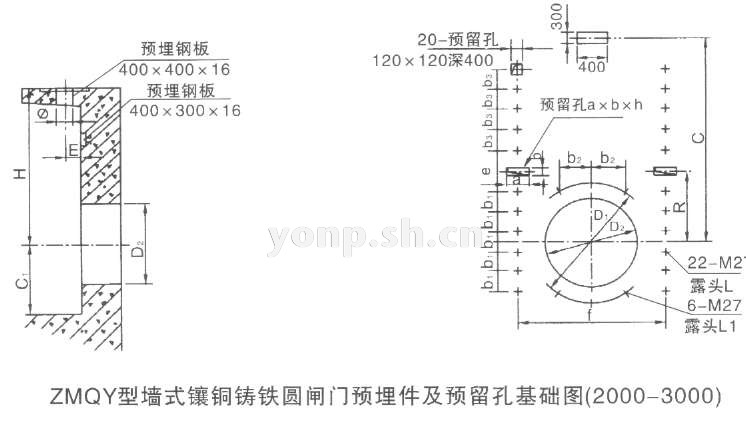 3)、工程設計、施工、安裝、維修、實際應用及運行維護請以生產廠家上海永鵬SHYONP隨貨附件中的ZMQY型墻式鑲銅鑄鐵圓閘門使用說明書或提供的CAD生產圖紙為準,歡迎來信來電咨詢技術、選型、方案、出廠價格。